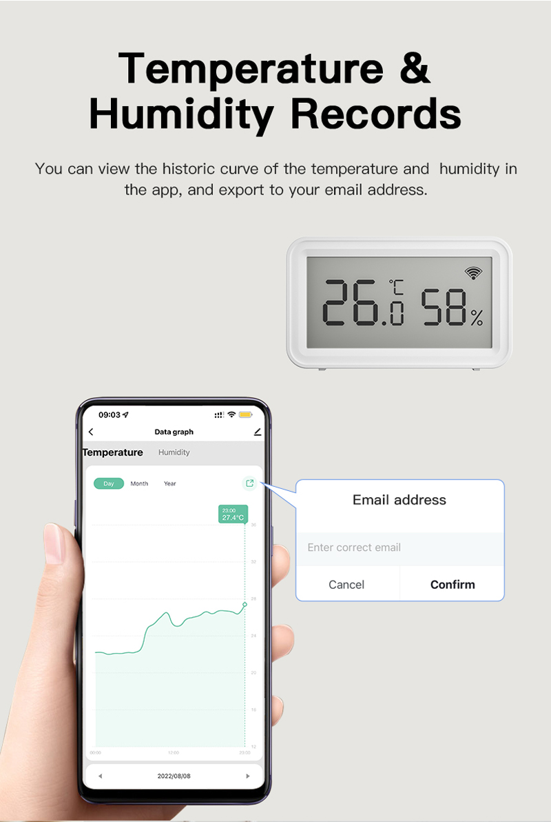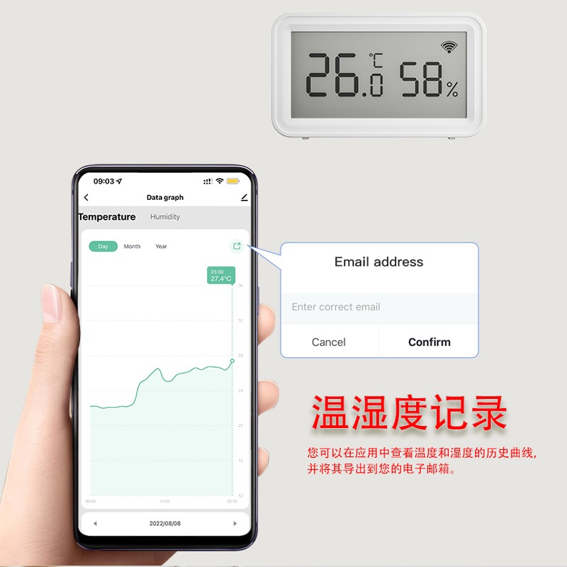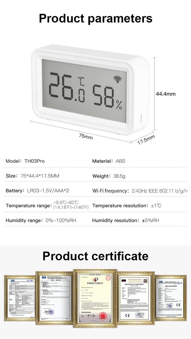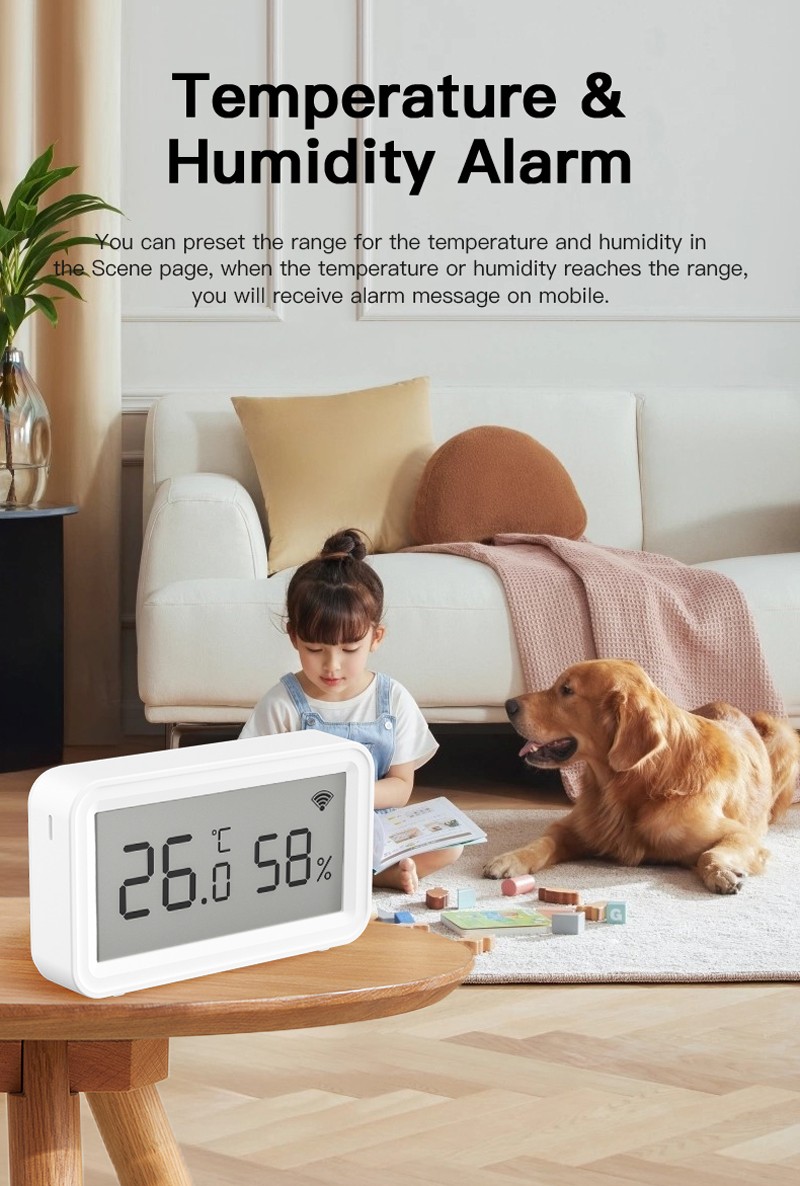 Tuya Smart digital thermometer and hygrometer for home use, baby rooms, wine cellars, and storage rooms. Accurate environmental monitoring.